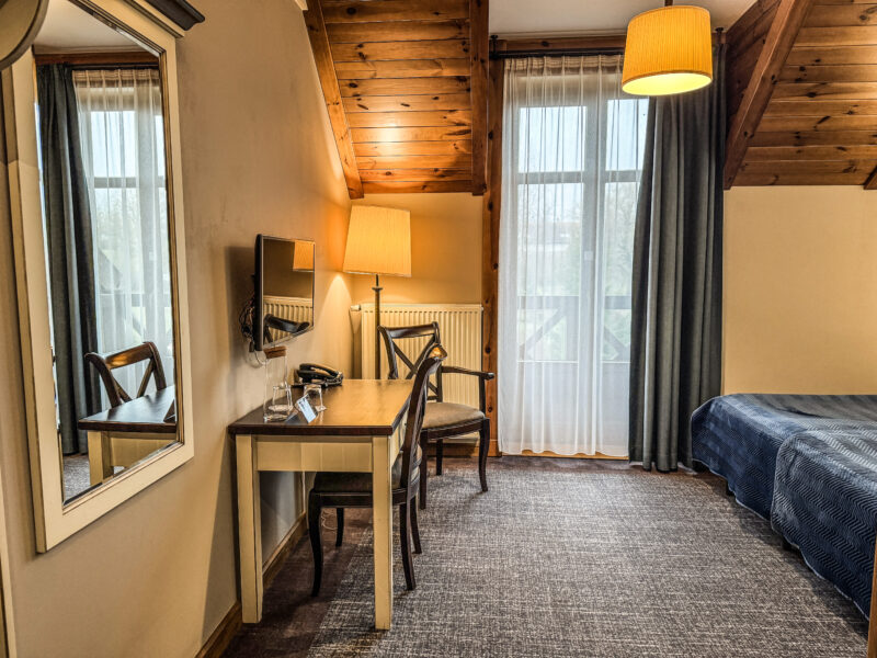 - Pokoje LUX (widok na jezioro lub ogród z balkonem lub tarasem): 5% dopłaty do całości pobytu.