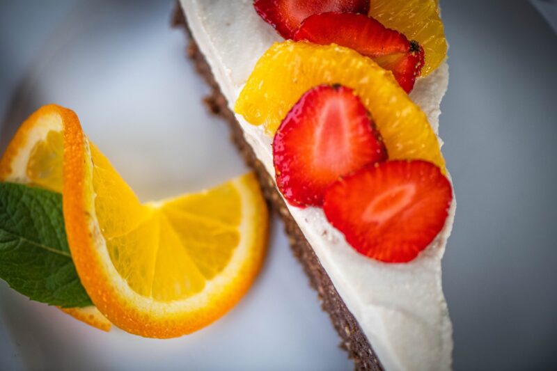 - Kompozycja trufli domowej roboty z sałatką owocową