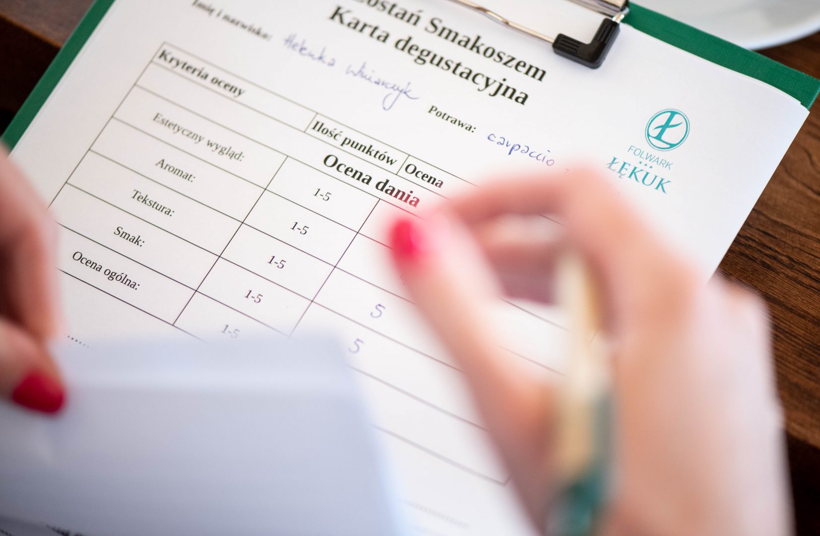 Finał akcji „Zostań Smakoszem” już za nami! Dziękujemy za zgłoszenia – mieliśmy ich blisko 70! Spośród nich wybraliśmy i zaprosiliśmy 9 osób do testowania karty Menu restauracji „Ogień i Woda”. Wszystkie zaprezentowane dania są dostępne w naszym letnim menu. Uczestnicy mieli do wyboru 2 sety degustacyjne – wegański oraz tradycyjny. Goście otrzymali karty degustacyjne i poprosiliśmy o zapisanie na nich swoich opinii – było miejsce na ocenę smaku, wyglądu oraz aromatu. Jesteśmy właśnie w trakcie podsumowania! Każdy miał okazję testować 7 pozycji.