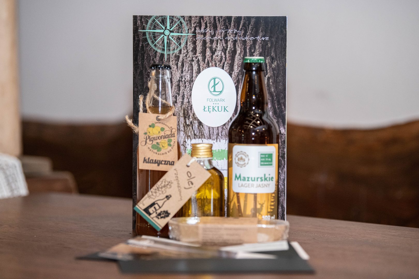 Każdemu z uczestników chcieliśmy podziękować za poświęcony czas. Otrzymali od Folwarku drobne zestawy upominkowe w skład których wchodziły prezenty od naszych partnerów – Pigwoniady oraz Mazurskiego Browaru. W każdym zestawie czekał również łękucki olej rzepakowy tłoczony na zimno oraz voucher -15% na usługi SPA. Mamy nadzieję, że smakoszom przypadła nasza kuchnia do gustu i odwiedzą nas ponownie!